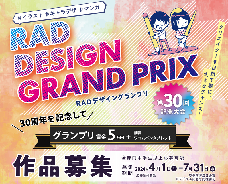 | 入選発表 | 入賞した方には文書で通知します。 入賞作品は「RADデザイングランプリ作品展」 に展示いたします。 |